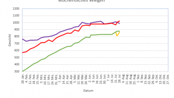 Rosi wills wissen. Fettwanst der Woche und der Bestwert überhaupt, persönlich und in der Gruppe. Offenbar tut es ihr gut, dass Bean weg ist und dass die Milben weg sind.