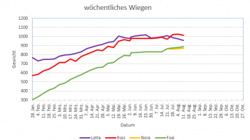 Lotta ist immer noch nciht toll, aber wenn ich bedenke, dass wir diese woche eigentlich shcon bei 929 waren, also noch 17g weniger als jetzt, geht das eigentlich. klar der Trend geht weiter nach unten, aber ich bin mir auch zu 100% sicher, dass sie diese Woche brünstig war.