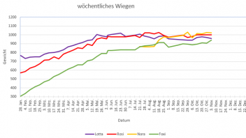 Nora stagniert auch vom Gewicht und hat anscheinend in Rosi eine beste Freundin gefunden. Die beiden sehe ich quasi nur noch im Doppelpack.